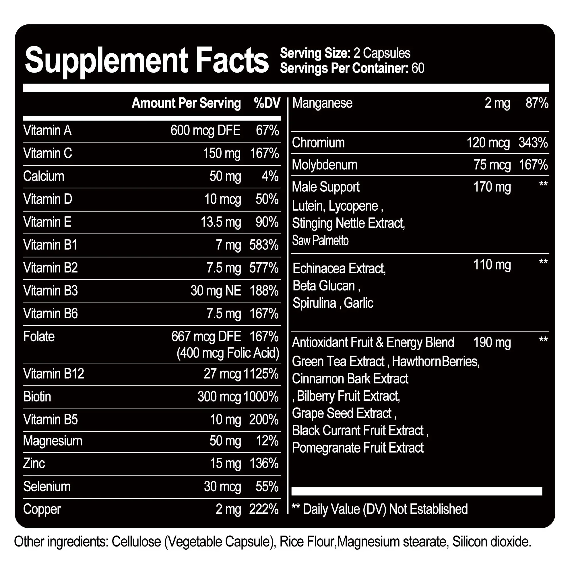 Usage And Dosage: Take two (2) capsules once daily